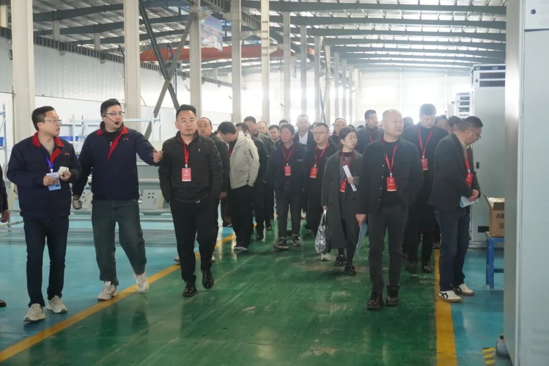 参观团一行百余人重点参观了晶锋集团的展示中心、高低压配电柜车间和高分子材料车间。进入配电柜装配车间,井然有序地生产现场,身着统一工装的员工们专注地守在各自工位,手法娴熟地进行柜体组装、元器件安装、线路配线等工序。伴随着轻微的机械声,一台台结构严谨、运行可靠的高低压开关柜、动力控制柜等产品在流水线上逐步成型。