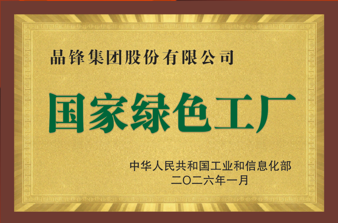 近日,“绿色工厂"名单,晶锋集团凭借在绿色制造、低碳发展、环保创新等方面的突出成效,成功入选,被正式授予“绿色工厂"称号!这一荣誉是国家对集团践行绿色发展理念、推动产业绿色转型的认可,更是集团深耕绿色制造、履行社会责任的生动实践与有力见证。